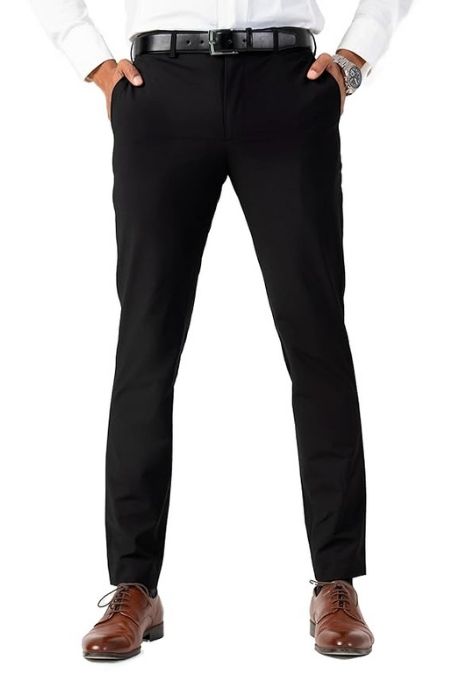 - Flat-front, with no pleats design